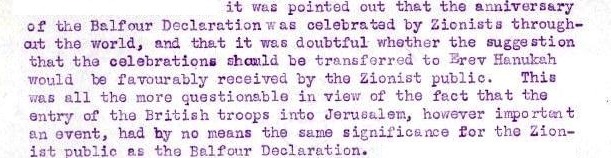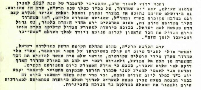 ערב חנוכה של שנת 1917 היה שמח במיוחד מבחינתם של יהודי ארץ ישראל. הצבא התורכי נסוג מירושלים, והיא נכבשה על ידי הצבא הבריטי. כחודש לפני כן אירע מאורע היסטורי אחר, שקשור לאימפריה הבריטית וליהודים: הצהרת בלפור. בשנים שלאחר מכן ציינו במקומות רבים בעולם את יום השנה להצהרת בלפור. בארץ ישראל ציינו היהודים בנוסף גם את יום כיבוש ירושלים, שהיווה עבורם הצלה משנות המלחמה הקשות, וסימל את השחרור משליטתה של האימפריה העות'מנית.