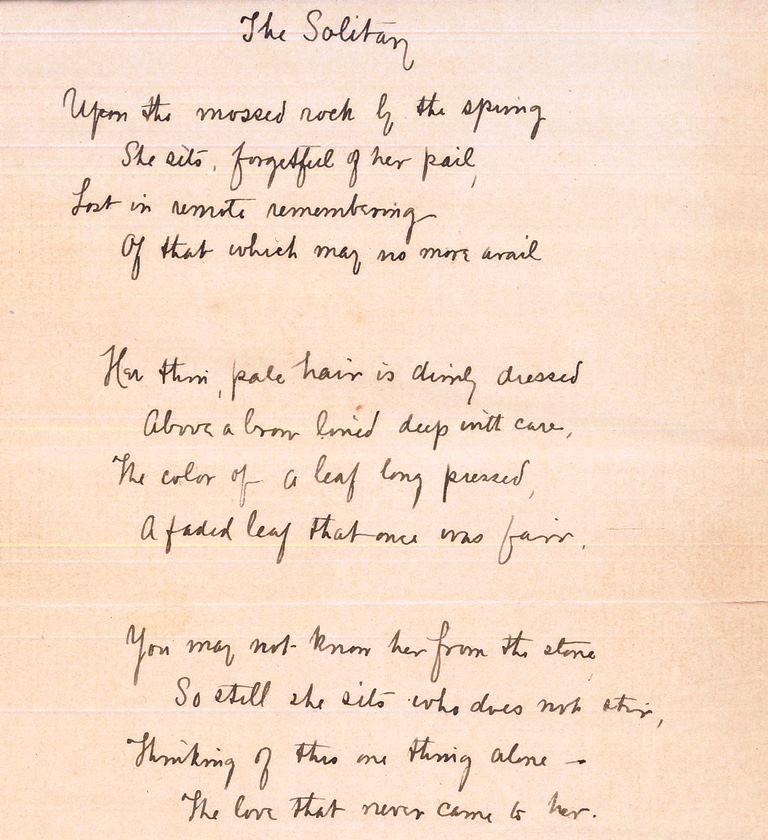 שיר שכתבה סאלד: "התבודדות". השיר עוסק בנערה היושבת מול הים וחושבת על אהבתה הנכזבת. הוא שמור עם "מכתב לידיד יקר מכל". לא מתוארך ( A125\986)