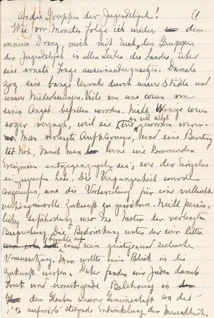 מכתב לבני עליית הנוער המתעתדים להתגייס לצבא הבריטי, 1942: "לפני שתחליטו להתגייס, שאלו את עצמכם מה הסיבות לכך. האם אתם לוקחים בחשבון את הסכנות האורבות לתרבותנו, האנושית והיהודית? או שמא נובעת החלטה מהרצון לא להתמודד עם מטלות השיגרה המעיקות? חישבו: לו הוריכם היו עימכם, מה הם היו אומרים?" ( A125\40)