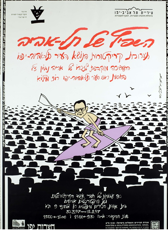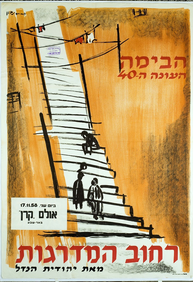 מימין - כרזה בעיצובו של אריה נבון להצגה "רחוב המדרגות" של יהודית הנדל (KRA\3790). משמאל - כרזה לתערוכת קריקטורות לזכרו של אריה נבון (KRA\3828).אריה נבון (1996-1909), צייר ורשם ישראלי, נחשב לקריקטוריסט הראשון ביישוב היהודי. במשך יותר משלושים שנה היה הקריקטוריסט של "דבר" (1964-1933). כמו כן היה מעצב תפאורות חשוב, שעיצב תפאורות לכל התיאטראות בארץ, וזכה בפרס ישראל לאמנויות הבימה בשנת 1996.