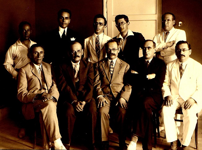 משה יוסף גליקסון (בשורה הראשונה במרכז). היה עורך עיתון הארץ בין השנים 1923-1938. תחת שרביטו אימץ העיתון את הקו הליברלי- מתון המאפיין אותו עד היום (PHG\1024036)