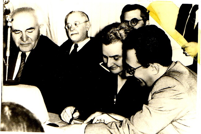 רחל כהן כגן, בזמן חתימתה על מגילת העצמאות - אחת משתי הנשים היחידות החתומות על המגילה (השניה היא גולדה מאיר)