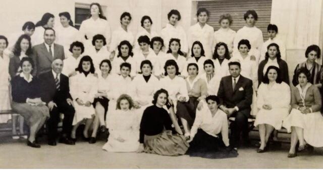 (בשורה השנייה, שלישי מימין), בחברת תלמידותיו