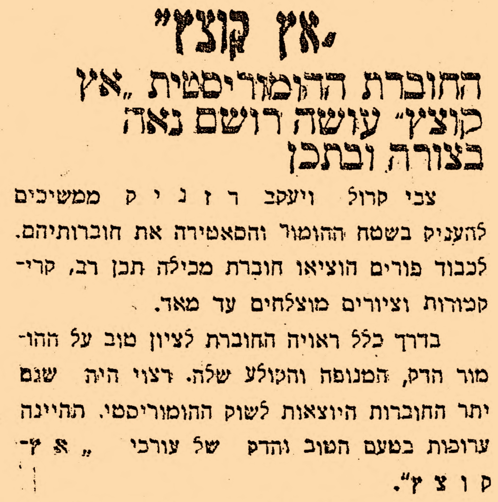 פרסומת לחוברת הסאטירית "אץ קוצץ"