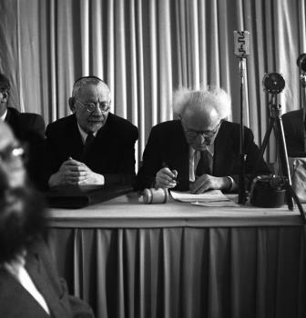 פישמן ובן גוריון בטקס ההכרזה ( NKH\409888)