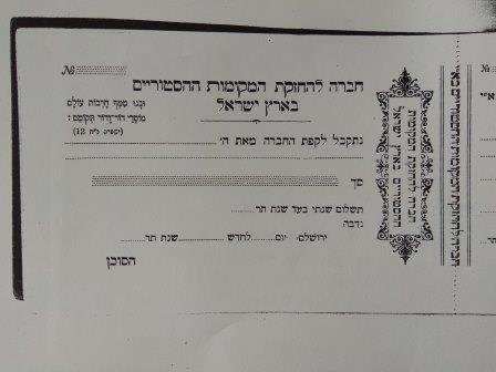 קבלה על תשלום לחברה להחזקת המקומות ההסטוריים בארץ ישראל (A153\A173)