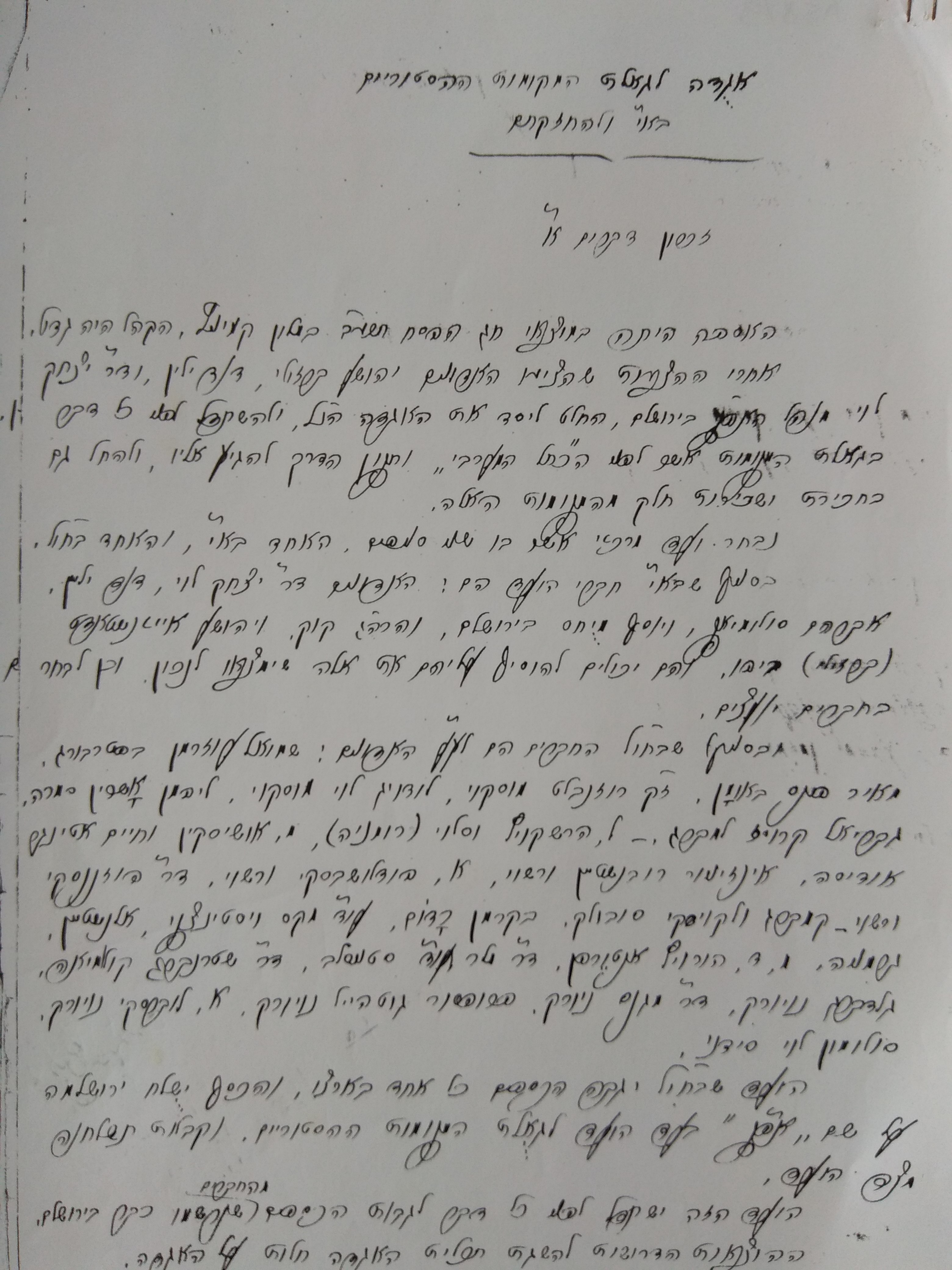 פרוטוקול החברה להחזקת המקומות ההיסטוריים בארץ ישראל, דף ראשון (A58\12)