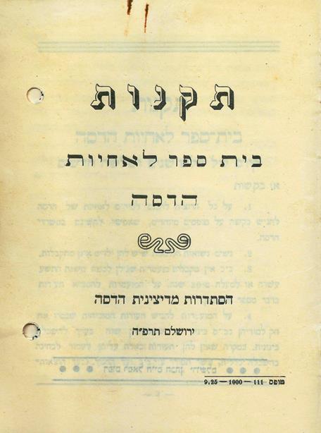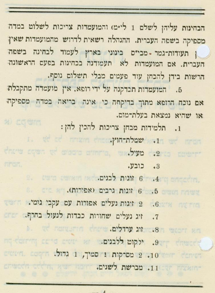 נעלים אפורות עם עקב גומי, זוג ערדלים ושתי מסרקות - הציוד הנדרש לתלמידות מבחן, תקנות בית הספר לאחיות 'הדסה', ירושלים תרפ"ה J117\504