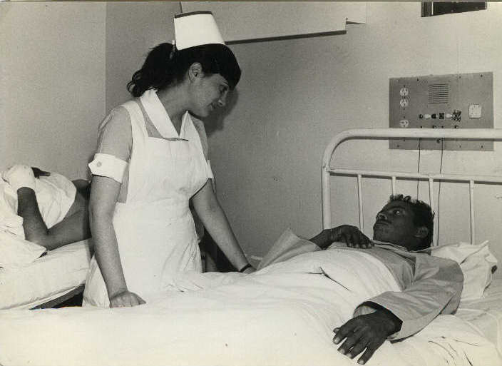 תלמידת ביה"ס לאחיות 'הדסה' מטפלת בשבוי מלחמה, שאושפז בבית החולים, מלחמת ששת הימים, 1967 | אוסף 'הדסה'