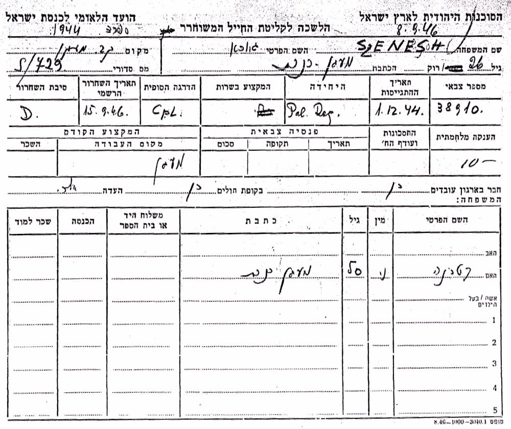 כרטיס שחרור על שם גיורא סנש (S37C)