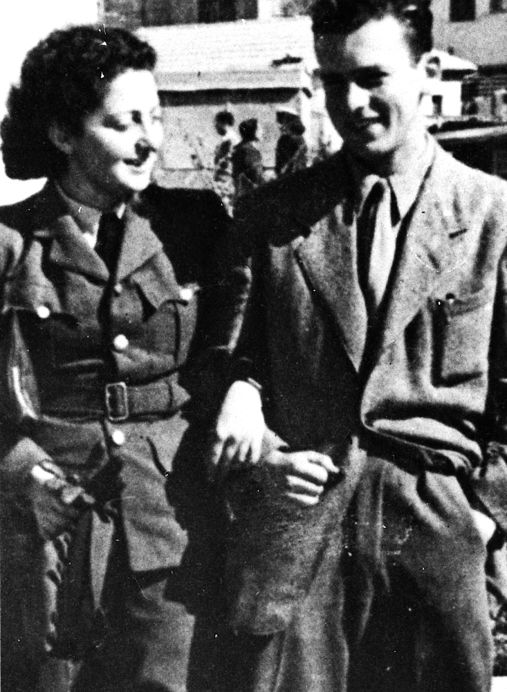 חנה ואחיה גיורא נפגשים זמן קצר לפני צאתה למשימת הצניחה, 1944 (NGEN\327424)