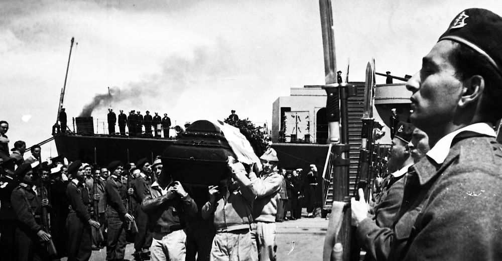 ארונה של חנה מתקבל על ידי משמר כבוד בחיפה, 1950. צילום: אדגר