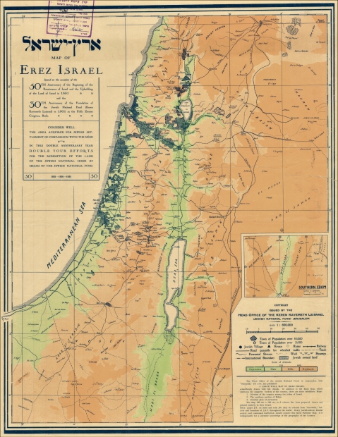 מפה פיסית של ארץ ישראל, שהוצאה לכבוד 30 שנות קק"ל ו- 50