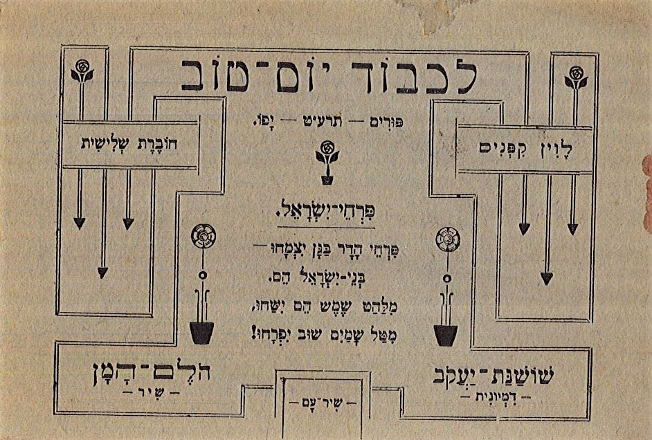 מלחמת העולם הראשונה הדפוס נדד לרחוב בוסטרוס ביפו ואת חוברת פורים קיפניס הדפיס