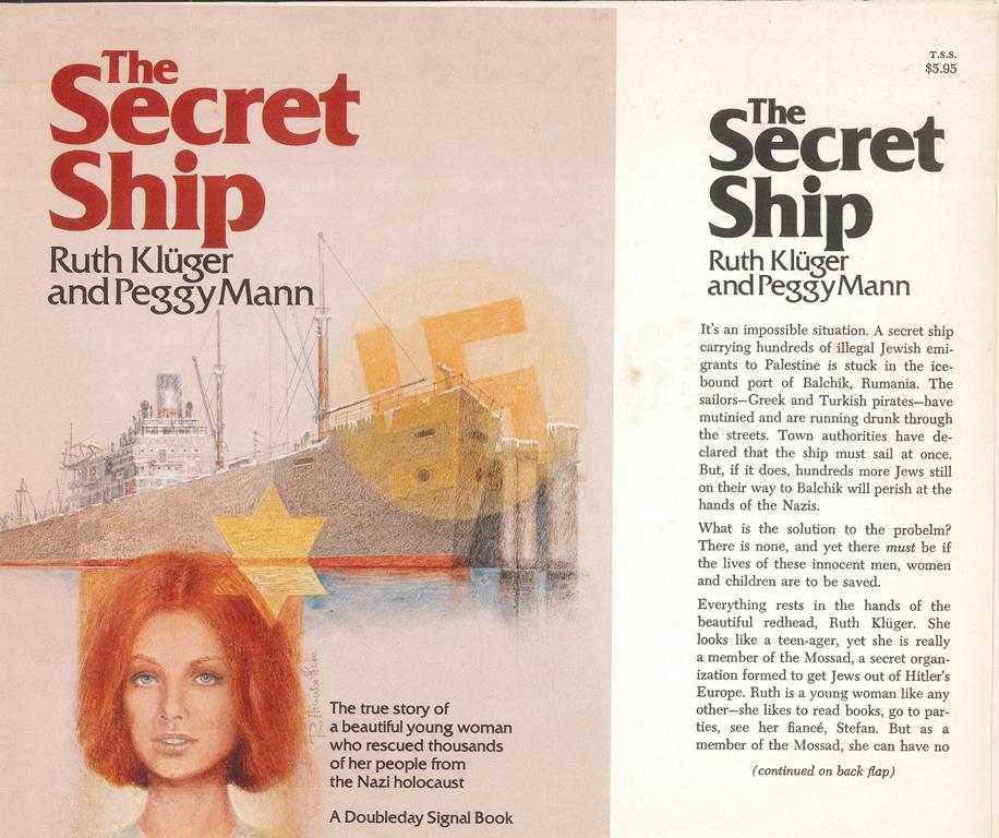 עטיפת הספר "האניה הסודית" (A454\112). "סיפורה האמיתי של אישה יפה שהצילה אלפים מבני עמה מן השואה הנאצית".