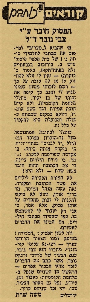 שהביאה להתכתבות"- כתבה ב"מעריב" על מכתבי התלמידים מגבעתיים אל משה