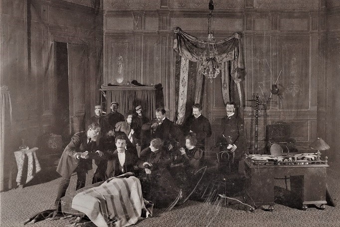 תמונת הסיום של המחזה "הגטו החדש". המחזה הוצג לראשונה רק ב-1898
