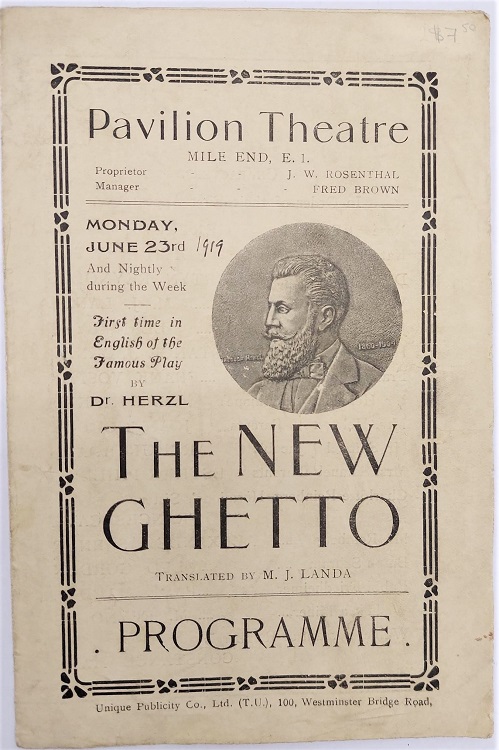 תוכנייה של ההצגה "הגטו החדש" בתיאטרון פביליון, שהציג את המחזה לראשונה
