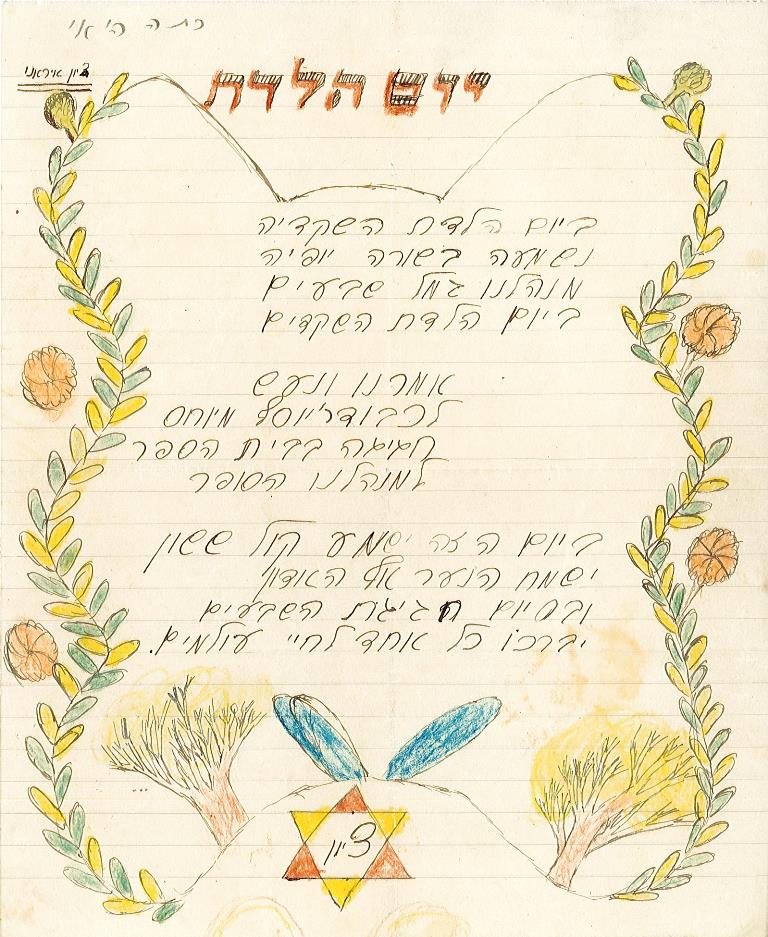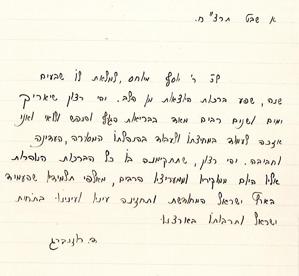 ברכה והזמנה למנהל יוסף מיוחס לחגיגות ה-70 להולדתו מכיתה ה' בבית הספר לבנים (A58\124)