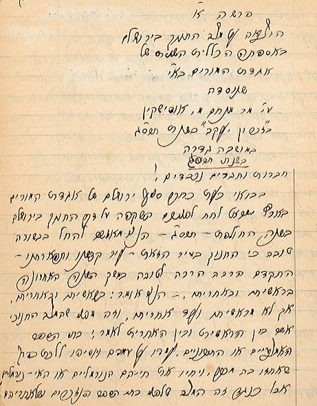 כתב יד של הרצאה שנתן מיוחס על מצב החינוך בירושלים באסיפה של 'אגודת המורים העברים' תרס"ג, 1903 A58\1