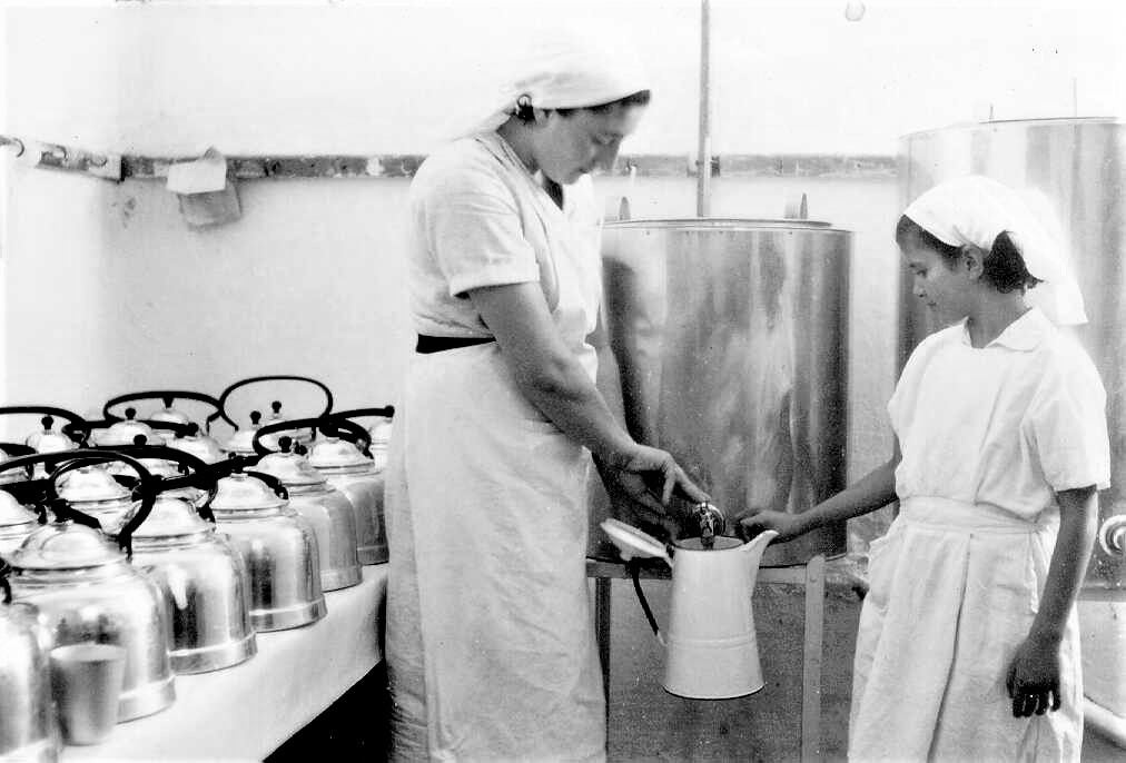 מגישות את החלב בביה"ס כי"ח לבנות, 1938.