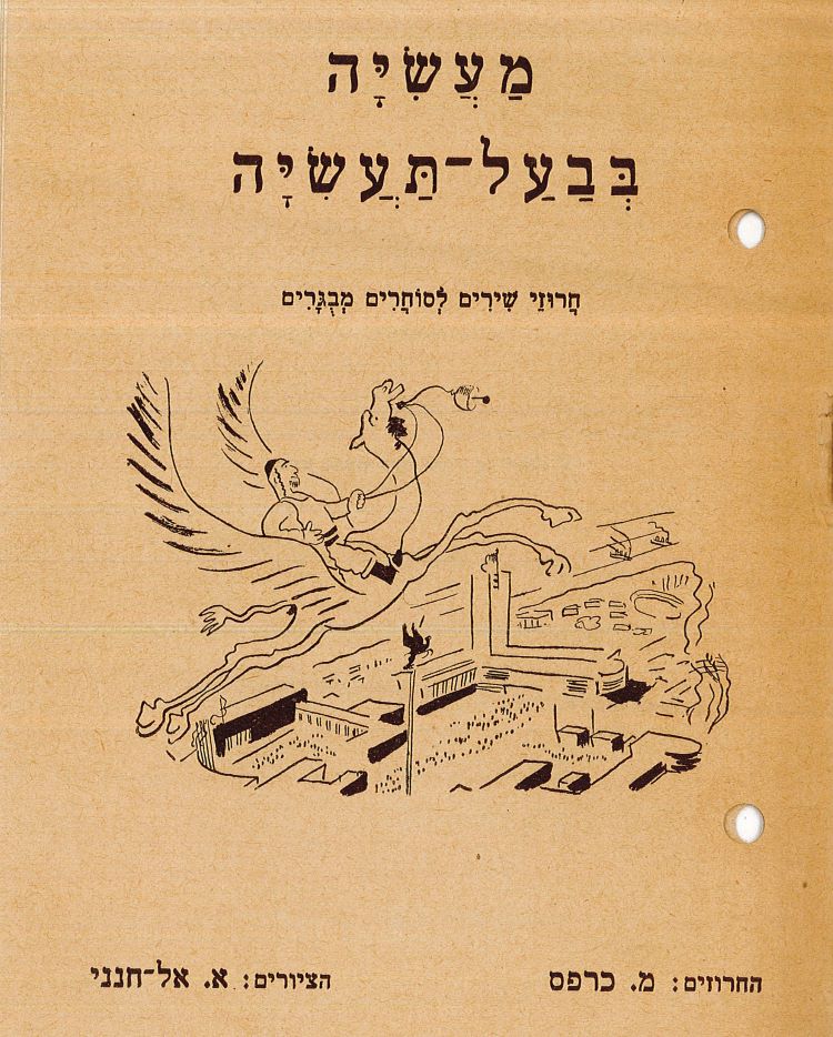 "מעשיה בבעל תעשיה - חרוזי שירים לסוחרים מבוגרים" חוברת מאת מ. כרפס עם איורים של אריה אלחנני, 1932 לערך (S8\1579)