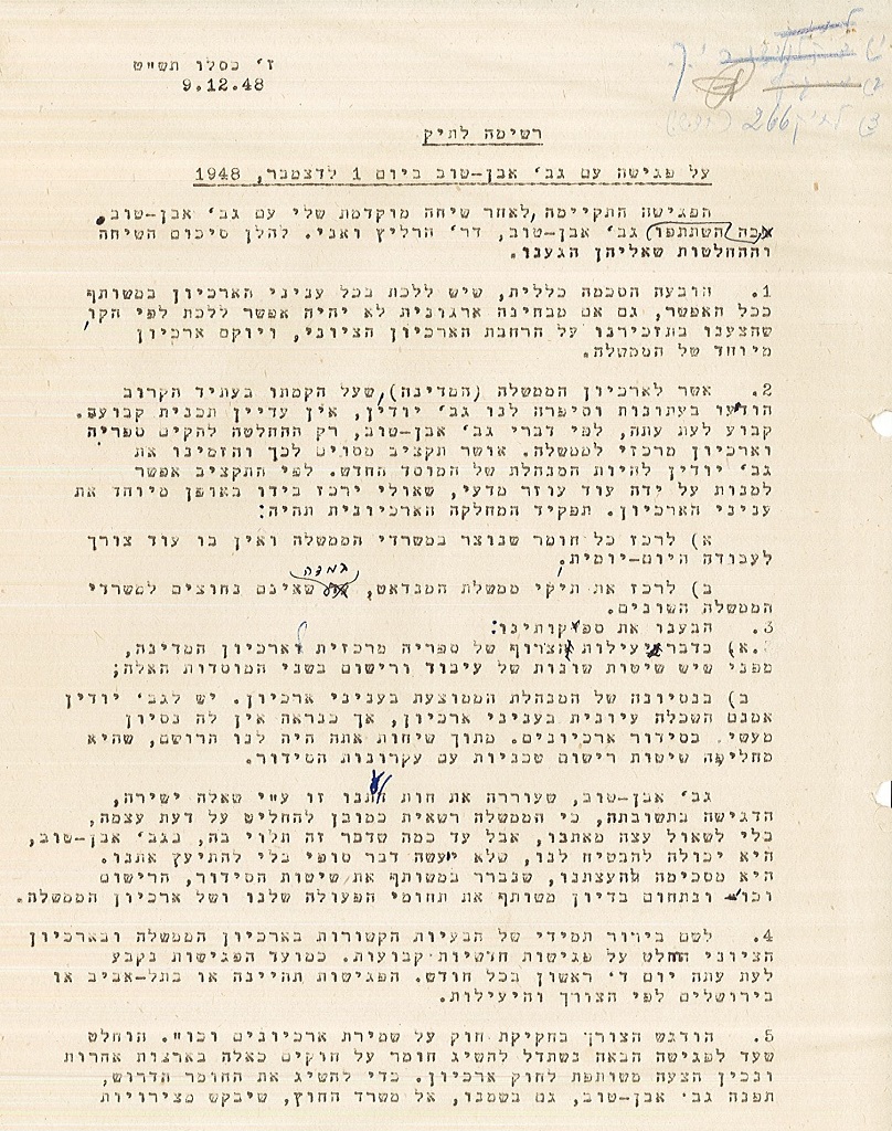 ואת סמכויותיו של הארכיון הממשלתי. בראשית ינואר 1949 העבירו הרליץ וביין לאבן-טוב