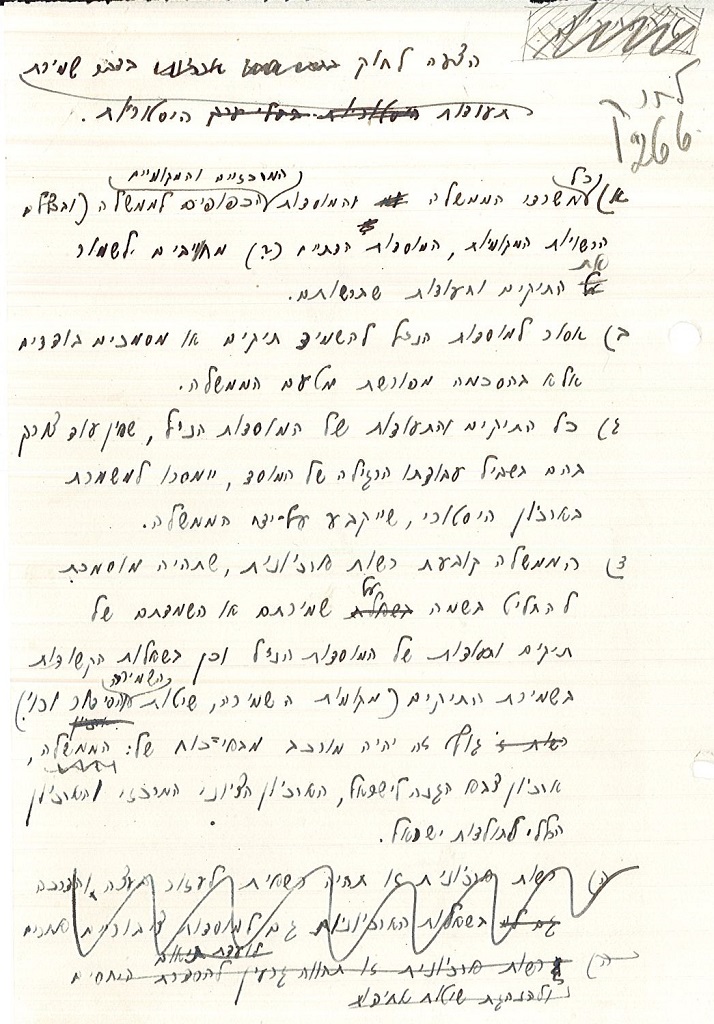 הצעה לחוק שמירת תעודות היסטוריות, מאת הרליץ וביין, בכתב ידו של ביין,