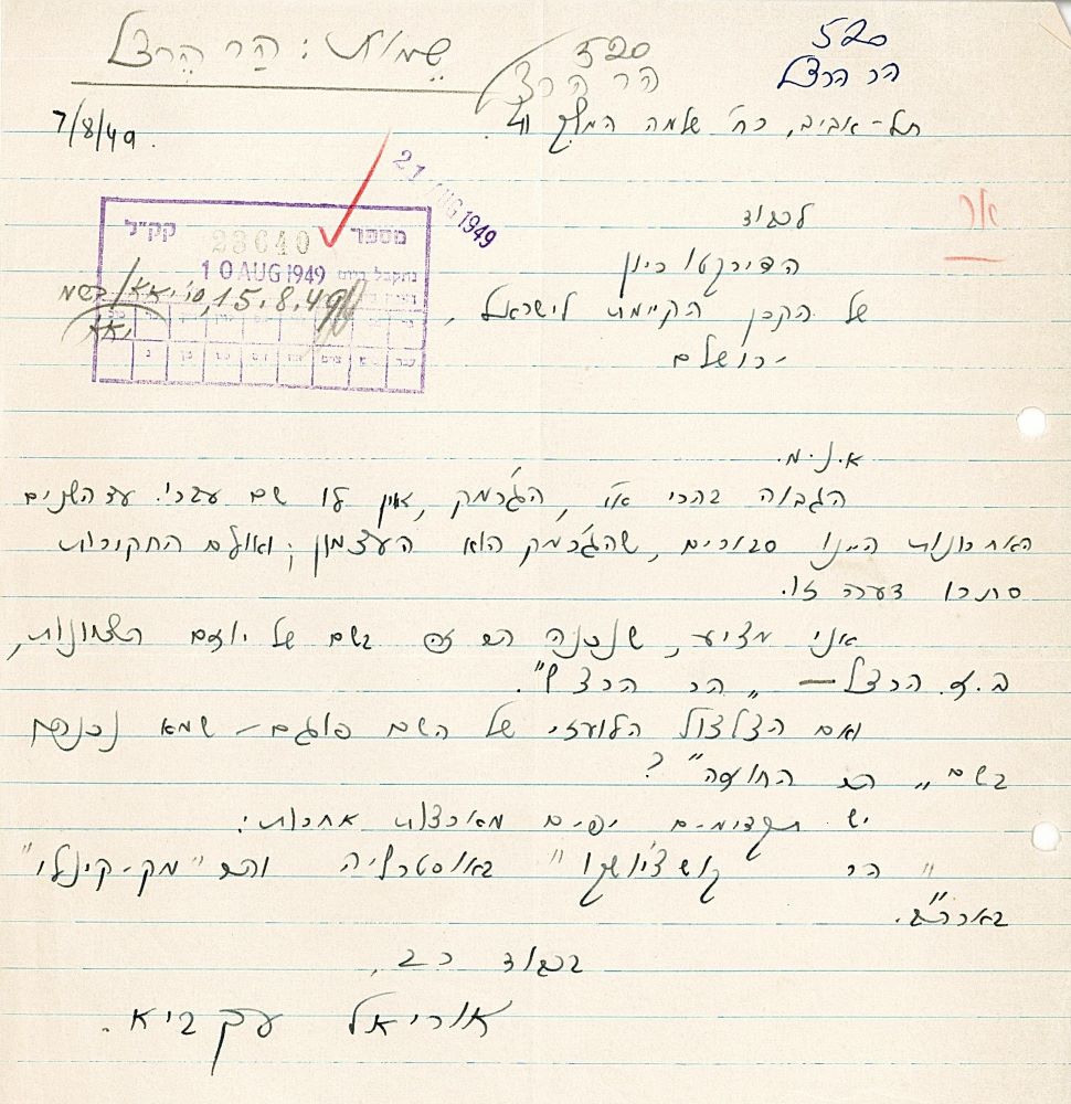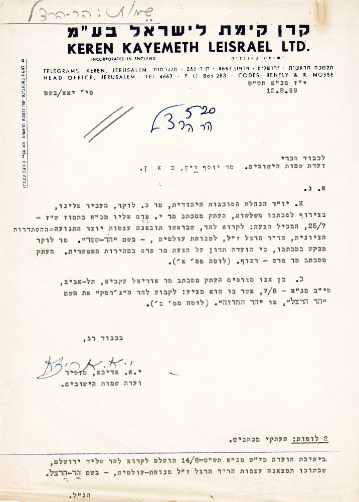 מזכיר ועדת השמות של קק"ל 14.8.1949 (KKL5\17206)
