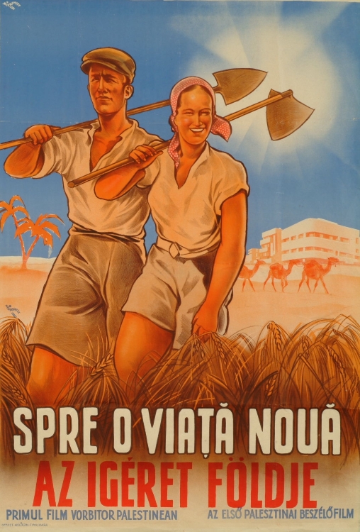 כרזת פרסומת לסרט "לחיים חדשים" ברומנית ובהונגרית. לפי הכרזה "הסרט המדבר הראשון מפלשתינה" (KRA\829)