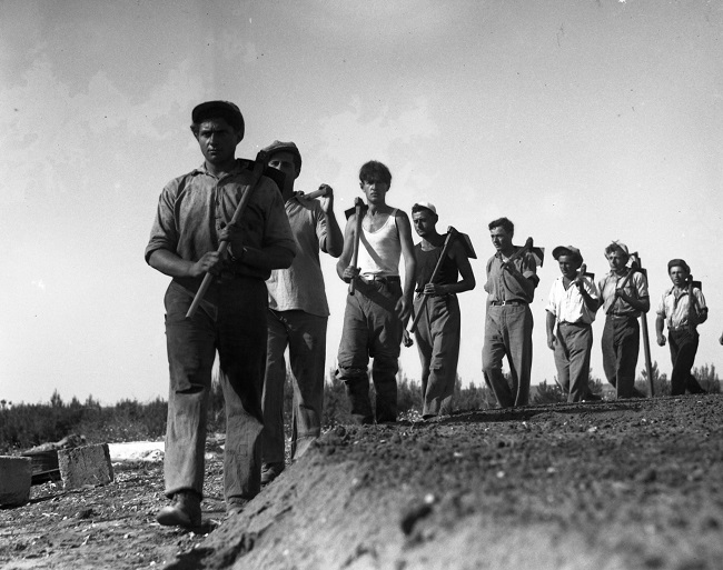 חלוצים בדרכם אל השדה. מתוך אוסף קרן היסוד. אידיאליזציה של דמות החלוץ (NKH\408007)