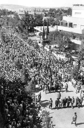 המונים מלווים את ארונו של אוסישקין ברחבי ירושלים ועד למערת ניקנור, 1941 (PHG\1090852, PHG\1090837)
