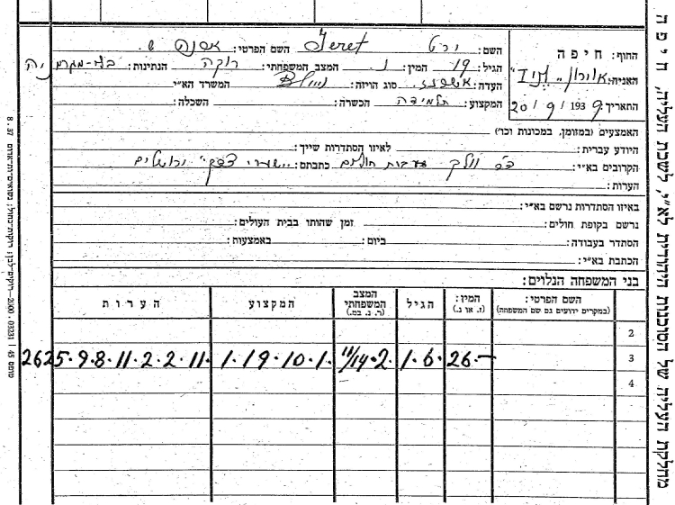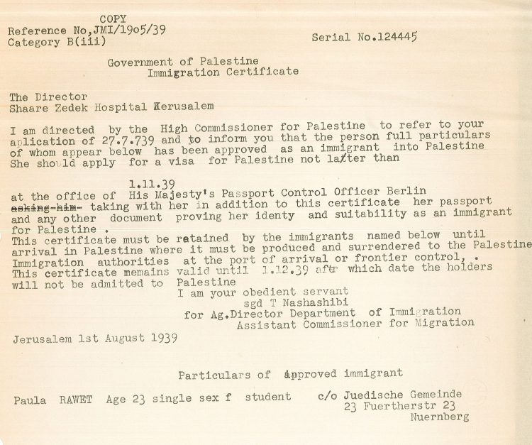 סטודנטית לסיעוד. בתאריך 13.6.1939 הוא כתב ליהושע בכר ממחלקת העלייה של הסוכנות