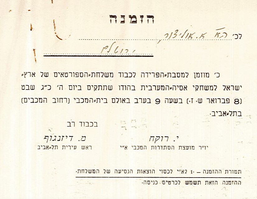לתחרויות בהודו והזמנה למסיבת הפרידה בתל אביב, 11.2.1934 (A195\45)