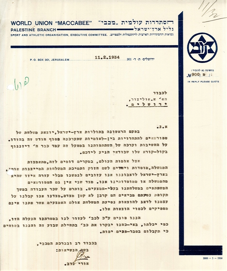 אביב. האגודה פנתה אל אוליצור ואל אנשים נוספים בבקשה לתמוך כספית בספורטאים הארץ-ישראלים,
