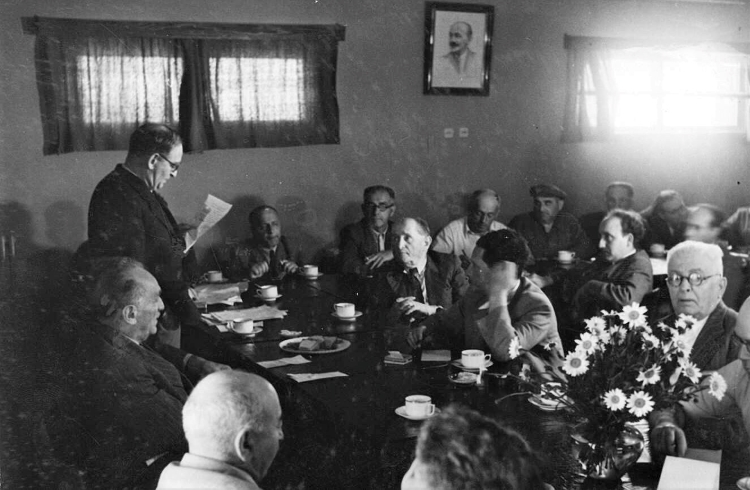 השקעותיה של קרן היסוד בהתיישבות החקלאית, לידו יושבים לייב יפה וד"ר הנטקה,