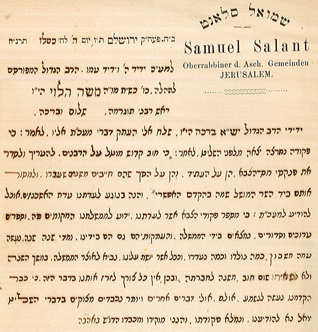 מכתב מבנימין ליוסף יואל בו הוא מזכיר