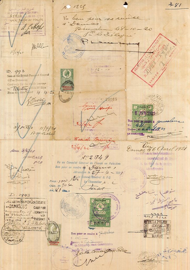 מפורט של הנוסע עם מספר רב של חתימות עקב נסיעותיו התכופות לארץ ישראל, 1920 (A486\224)