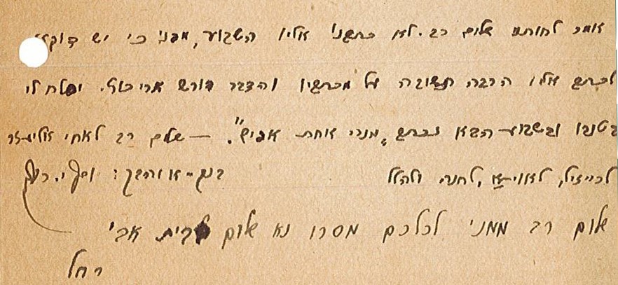 מכתב מיוסף יואל ריבלין לאביו ראובן