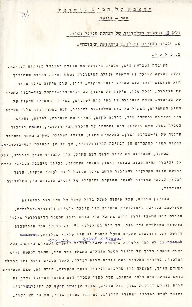 מתוך טיוטת הספר "מי מריבה ומעש" מאת שמחה בלאס, 1972-3 (A367\33)