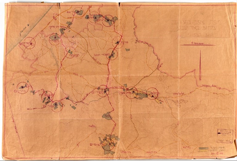הנקודות בנגב, שהוקמו שם בסתיו 1946. מפת הפרויקט נמצאת באוסף המפות של הארכיון