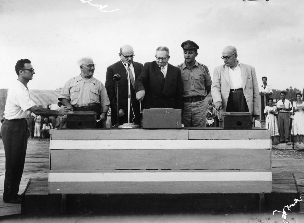מול פני האומה. עדות לכך ניתן למצוא בתמונה המפורסמת מטקס חנוכת מפעל ירקון-נגב ביולי