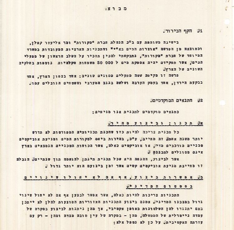 וחברת "ניר בע"מ" והחליטו על ייסודה של חברת מים, היא חברת "מקורות".