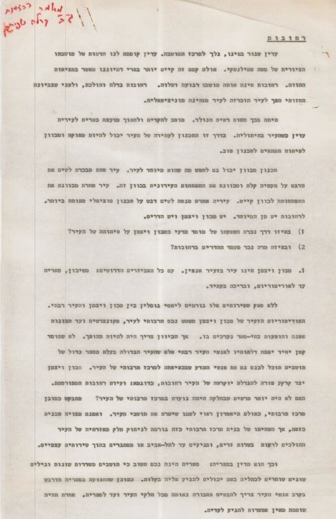 טיוטת המאמר 'רחובות', שכתבה שושנה מלמן, שנות ה-60 (משוער) (A615\2)