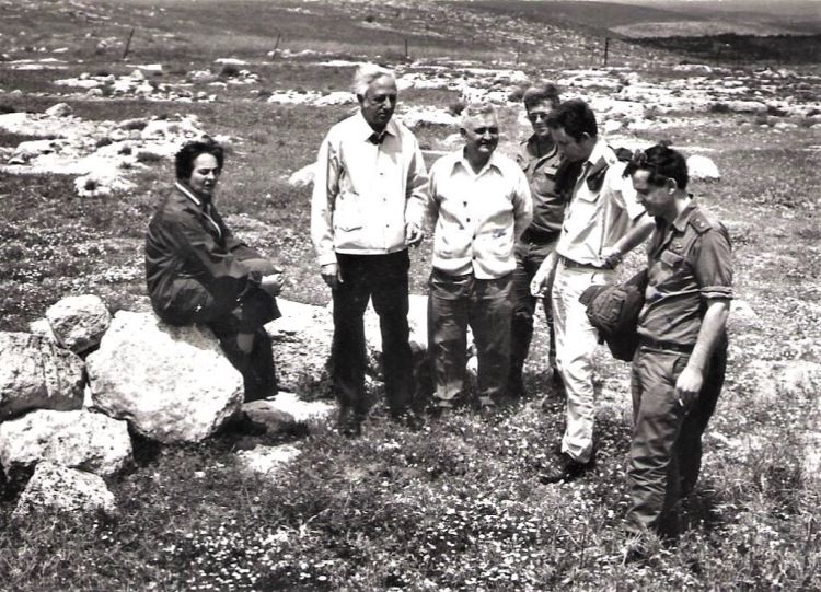 שושנה (יושבת) בסיור באזור מודיעין לקביעת מיקום היישוב שילת, שנות ה-70. באדיבות המשפחה.