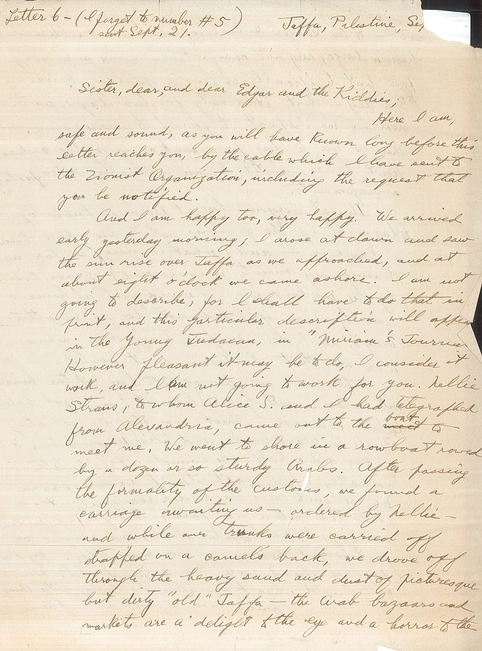 מכתבה הראשון של סמפטר מפלשתינה לאחותה (A219\7)