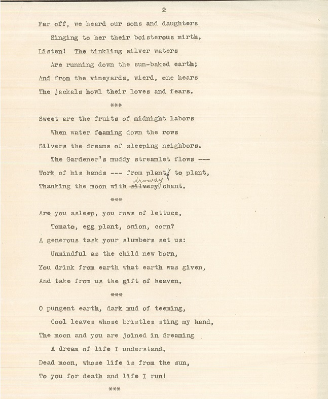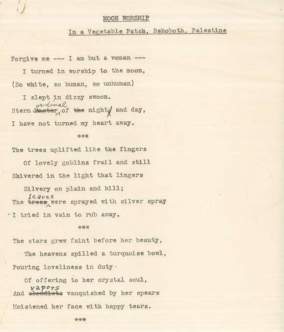 "עבודת הירח" נכתב בגינת ירק, ברחובות, פלשתינה (A219\7)