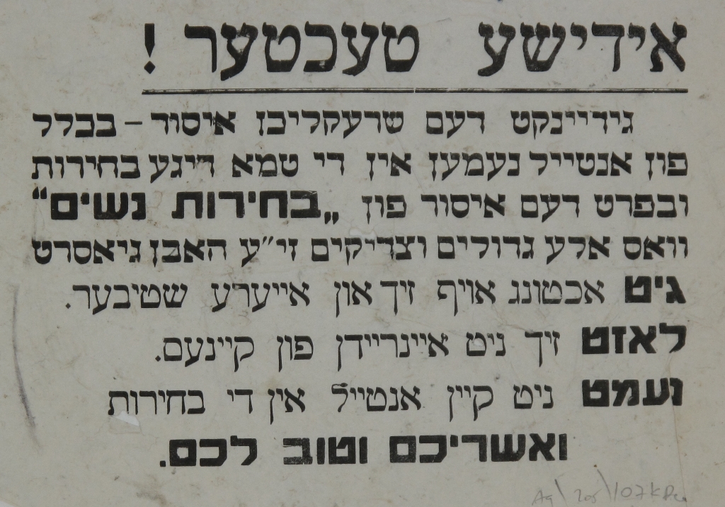 בת העדה האשכנזית בירושלים מוזהרת מלקחת חלק ב"בחירות הטמאות".