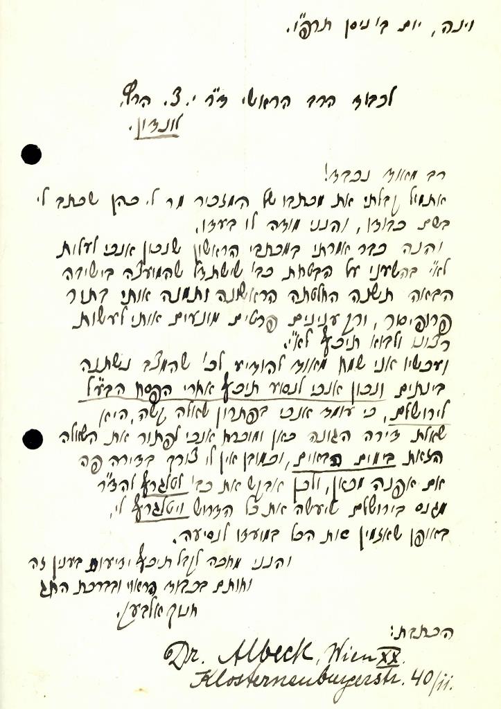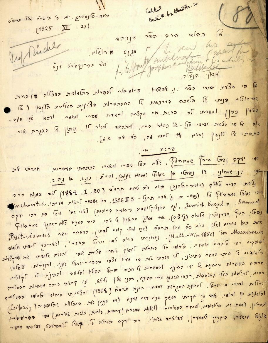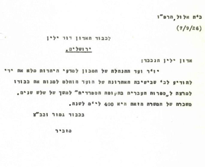 ועליה כתוב: "פתיחת המכללה העברית בירושלים" (TZ6\147)