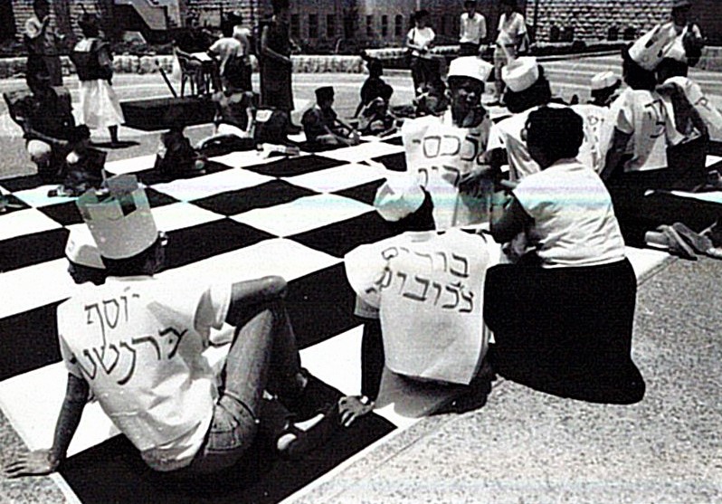 אלוף השחמט בוריס גולקו ולוח שחמט ענקי באירוע באוניברסיטה